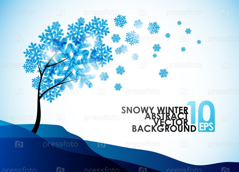 Зимний фон, дерево в снегу