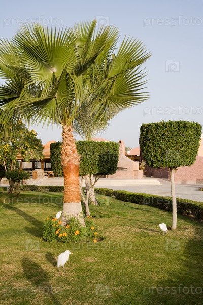 Цапли на территории отеля в Египте