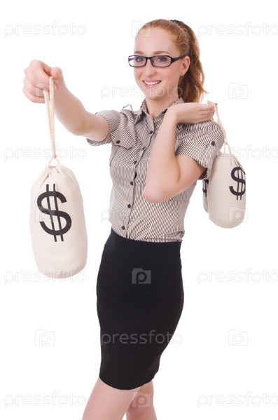 Девушка с мешками денег