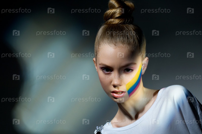 Девушка с изображением флага на щеке