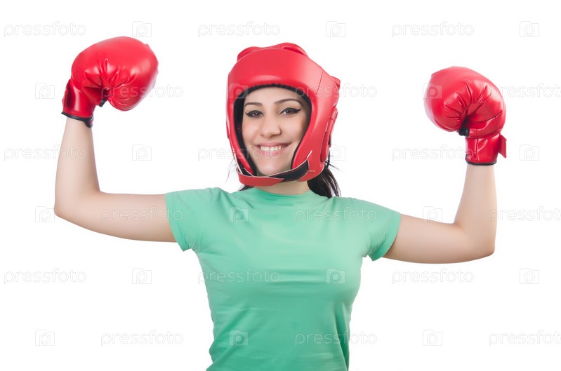 Женщина-боксер на белом фоне