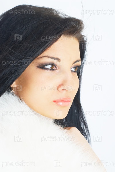 Красивая девушка в белом меху