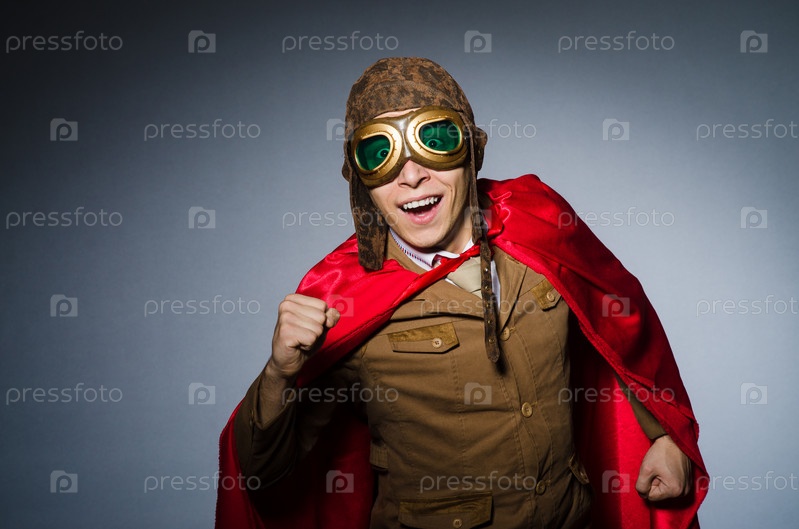 Смешной пилот с очками и шлемом