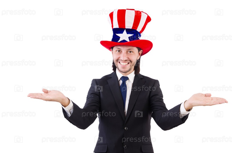 Человек с американским флагом, изолированный на белом фоне