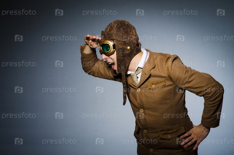 Смешной пилот с очками и шлемом