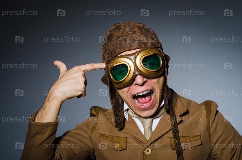 Смешной пилот с очками и шлемом