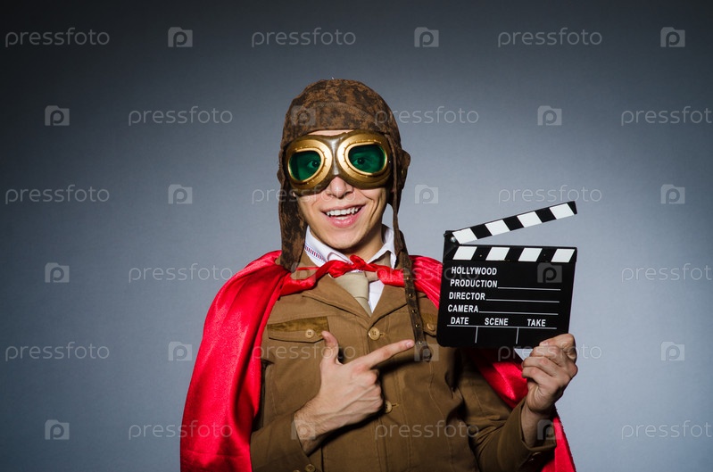 Смешной пилот в очках и шлеме