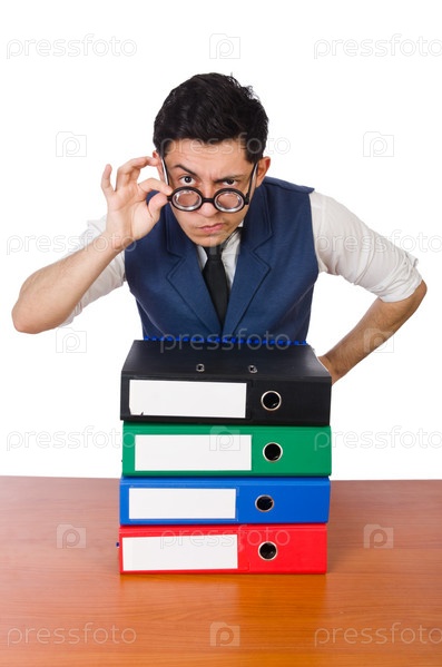 Забавный человек с большим количеством папок