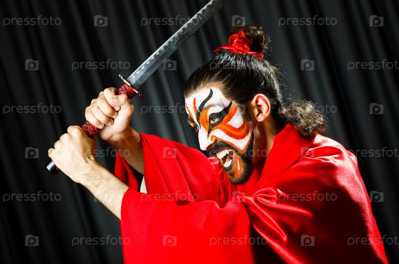 Человек с мечом и раскрашенным лицом