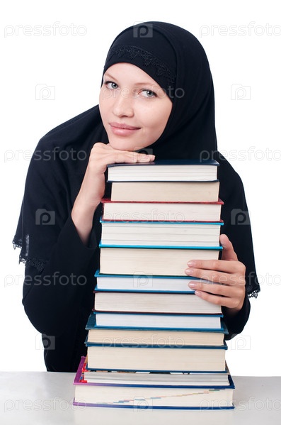 Мусульманская студентка с книгами