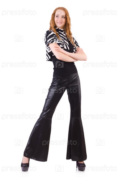 Рыжая женщина в черных клешах