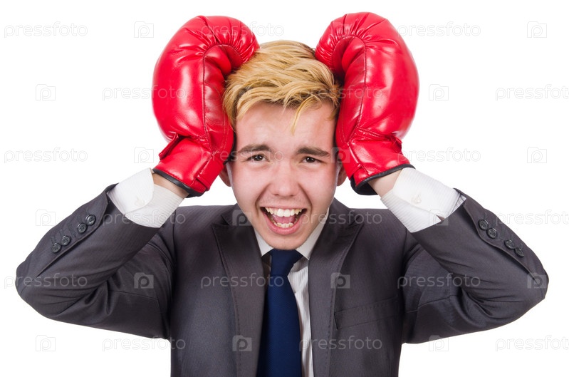 Смешной бизнесмен в боксерских перчатках