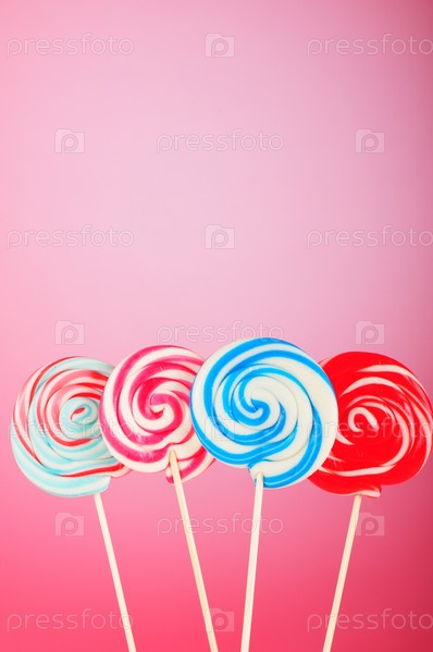 Яркие леденцы на розовом фоне