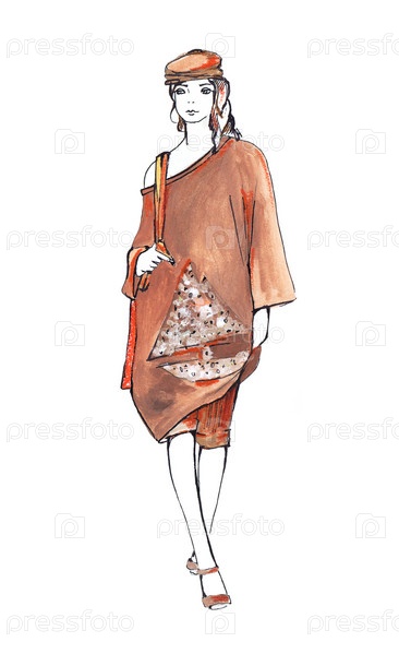 Женщина в коричневом костюме, эскиз. Гуашь и тушь