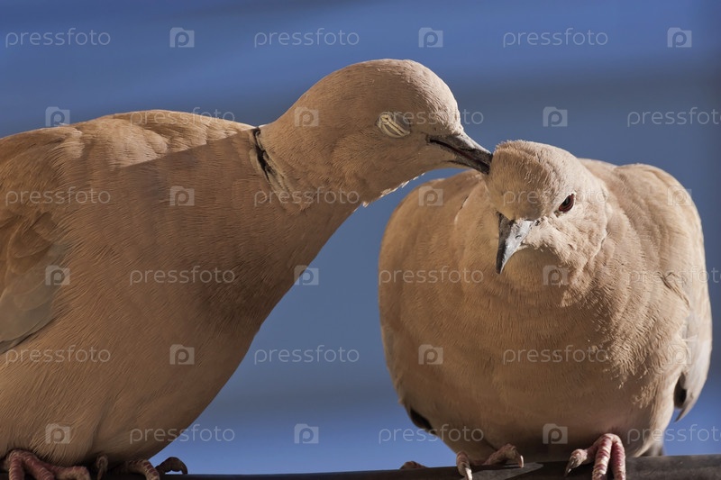 Пара кольцевых горлиц (Streptopelia decaocto) в крупном плане