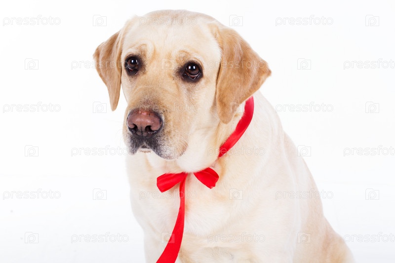 Лабрадор с красной лентой