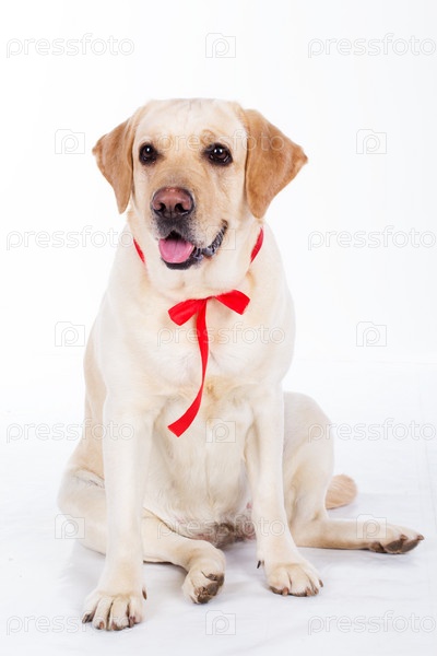 Лабрадор с красной лентой