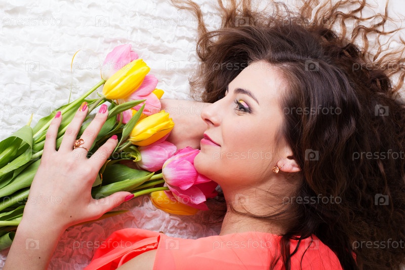 Красивая девушка с тюльпанами