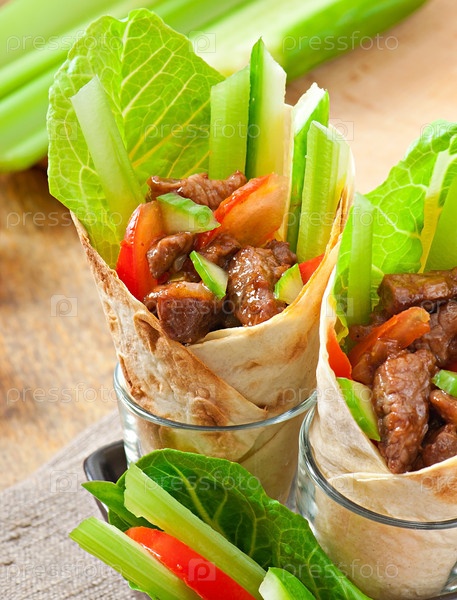 Тортилья с мясом и овощами