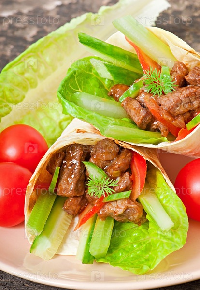 Тортилья с мясом и овощами