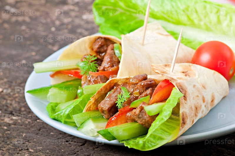 Тортилья с мясом и овощами