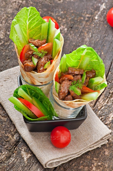 Тортилья с мясом и овощами