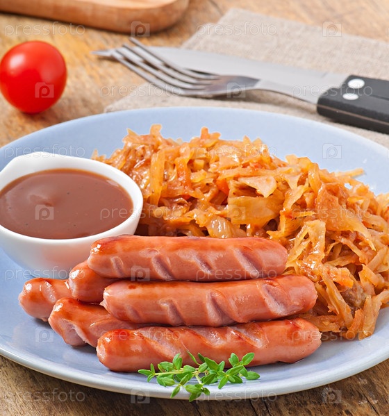 Жареная капуста и сосисками