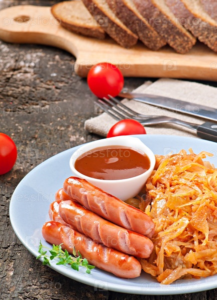 Жареная капуста и сосисками