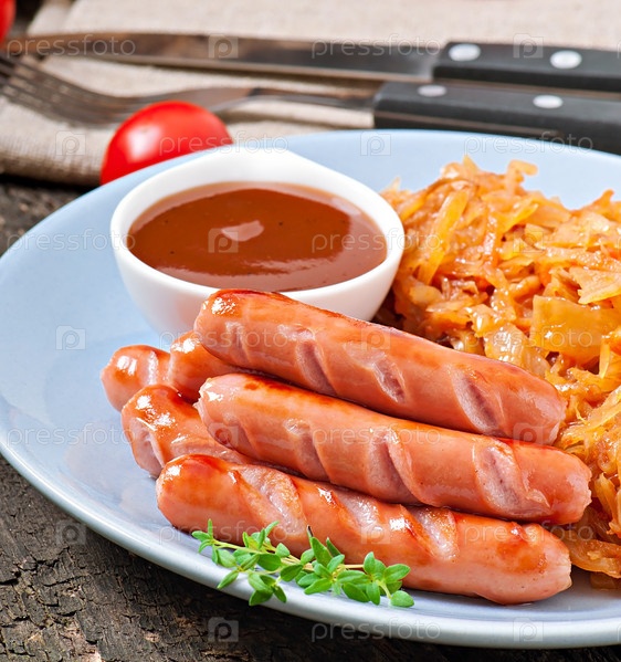 Жареная капуста и сосисками
