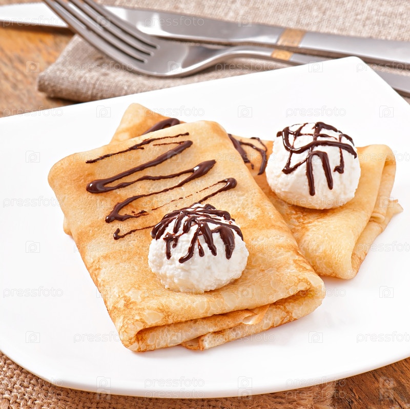 Блинчики с мороженым и шоколадным соусом