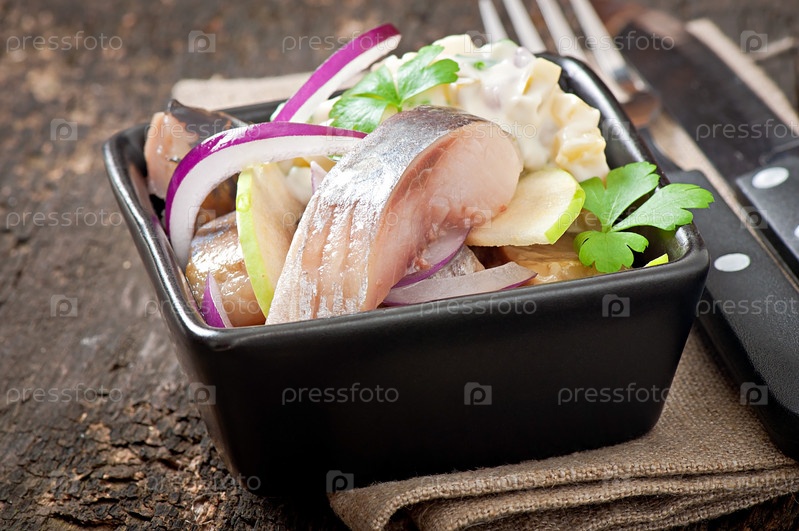 Салат из сельди с луком и зеленым яблоком
