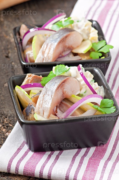 Салат из сельди с луком и зеленым яблоком
