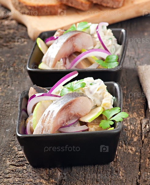 Салат из сельди с луком и зеленым яблоком