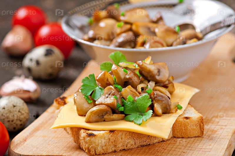 Бутерброд с грибами, сыром и петрушкой, выборочный фокус