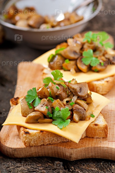 Бутерброд с грибами, сыром и петрушкой, выборочный фокус