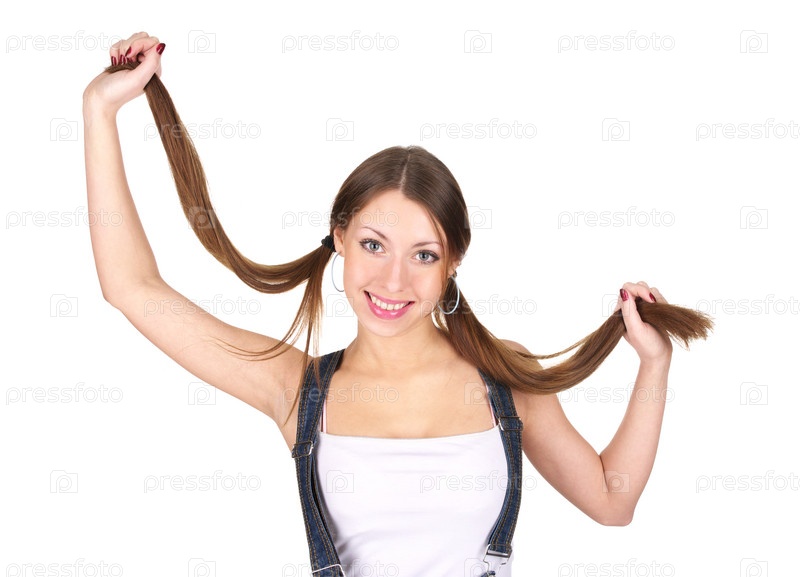 Молодые женщина с длинными волосами, изолирована на белом фоне