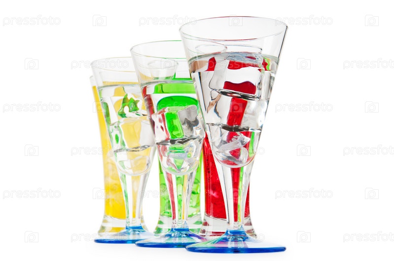 Разноцветные коктейли в бокалах на белом фоне