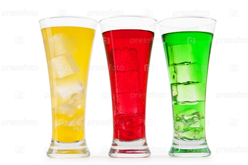 Яркий коктейли в бокалах на белом фоне