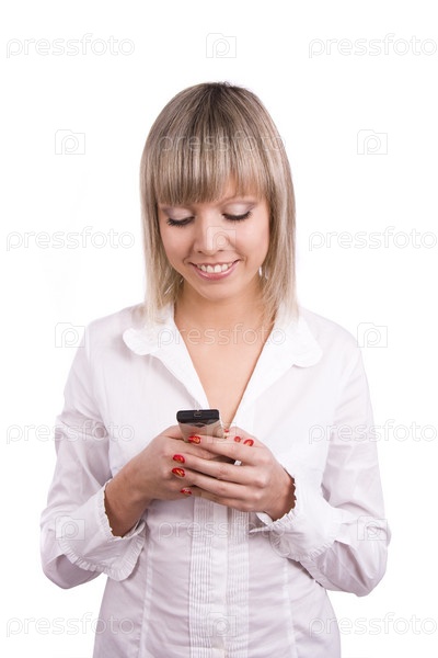 Улыбка - это как чтение смс-сообщений на мобильном телефоне.Счастливая женщина по телефону, должно быть, была довольно хорошей новостью.Молодая девушка на сотовом телефоне