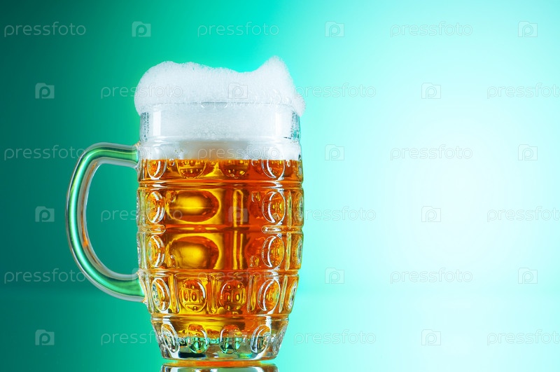 Кружка свежего пива на ярком фоне