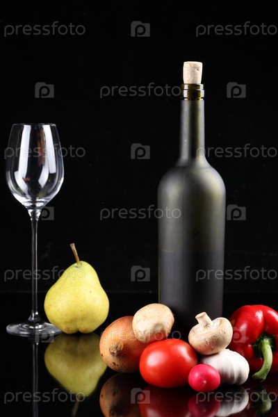 Натюрморт с бутылкой вина и овощами