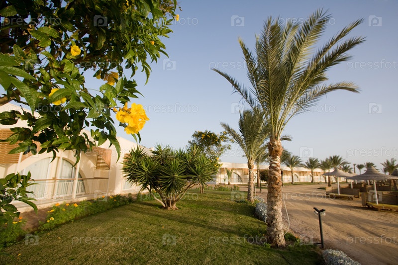 Желтые цветы на территории отеля в Египте