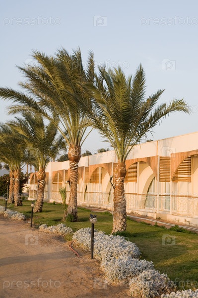 Пальмы на территории отеля в Египте
