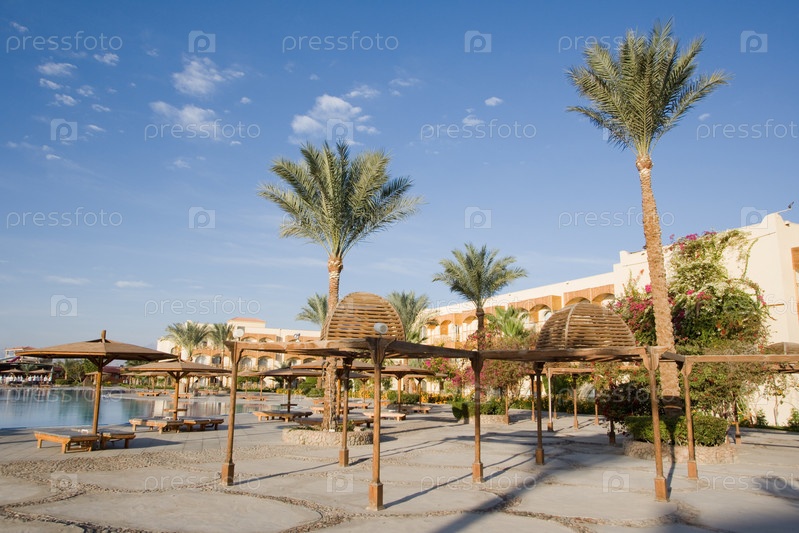 Пальмы на территории отеля в Египте