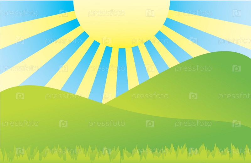 Зеленые холмы и солнце