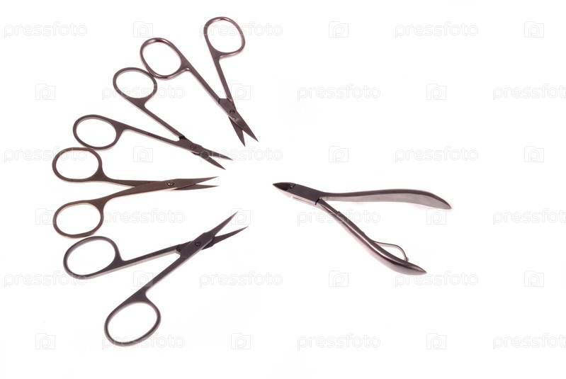Ножницы и щипчики на белом фоне