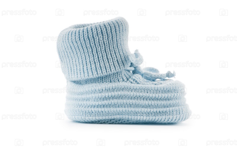 Детские вязаные пинетки на белом фоне