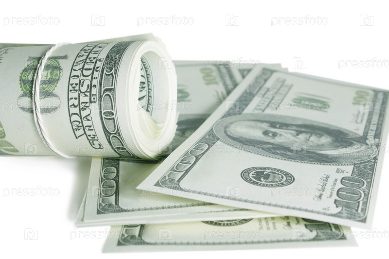 Стодолларовые купюры на белом фоне