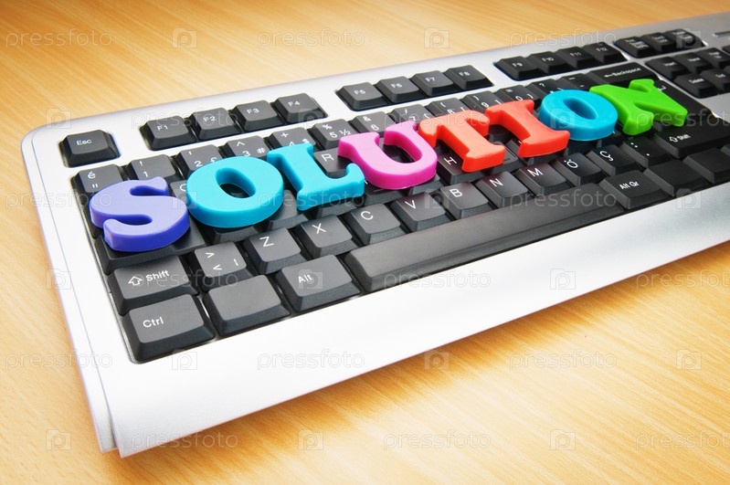 Слово "Решение" из разноцветных букв на клавиатуре