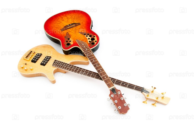 Басгитара и полуакустика на белом фоне